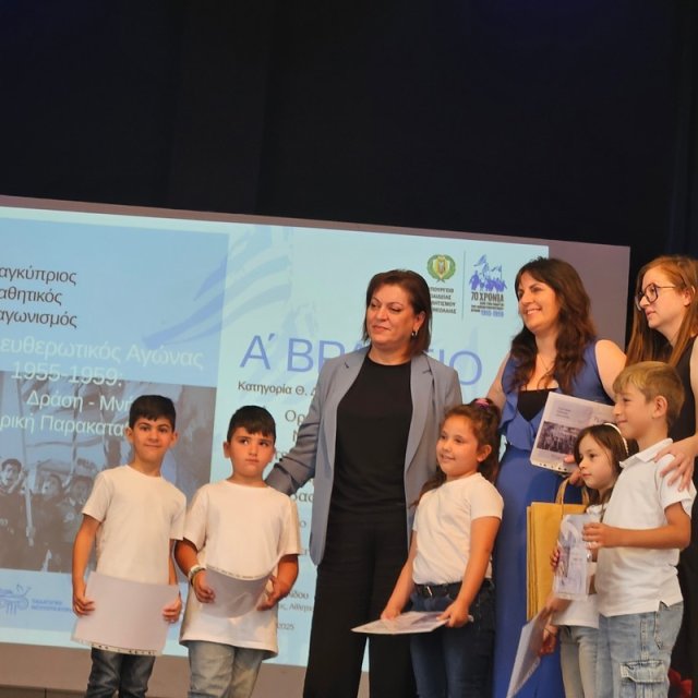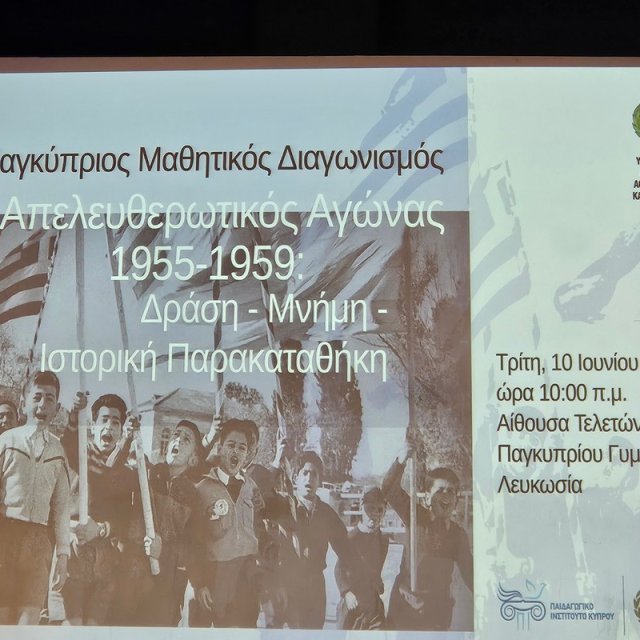 Το Υπουργείο Παιδείας, Αθλητισμού και Νεολαίας (Υ.Π.Α.Ν,), σε συνεργασία με το Συμβούλιο Ιστορικής Μνήμης Αγώνα Ε.Ο.Κ.Α. (Σ.Ι.Μ.Α.Ε.) και το Ίδρυμα Απελευθερωτικού Αγώνα Ε.Ο.Κ.Α. 1955-1959 (ΙΔ.Α.Α.Ε.), διοργάνωσε την Τρίτη, 10 Ιουνίου 2025, ώρα 10:00 π.μ., στην Αίθουσα Τελετών του Παγκυπρίου Γυμνασίου, εκδήλωση στην οποία απονεμήθηκαν τα Βραβεία στους μαθητές και στις μαθήτριες που διακρίθηκαν στον Παγκύπριο Μαθητικό Διαγωνισμό «Απελευθερωτικός Αγώνας 1955-1959: Δράση – Μνήμη – Ιστορική Παρακαταθήκη». Ο Διαγωνισμός προκηρύχθηκε με αφορμή τη συμπλήρωση 70 χρόνων από την έναρξη του Απελευθερωτικού Αγώνα 1955-1959.