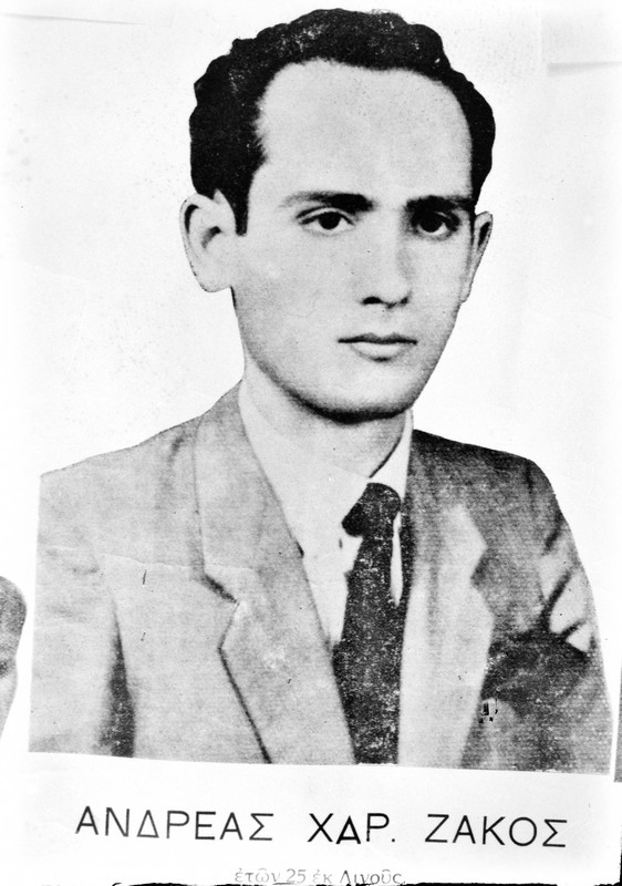 Ο μεγαλύτερός του αδελφός Γεώργιος υπήρξε ένας από τους πυρήνες της ΠΕΟΝ, της οποίας μια από τις προεπαναστατικές ενέργειες ήταν και η δολιοφθορά στα ηλεκτροφόρα καλώδια της Αρχής Ηλεκτρισμού, με αποτέλεσμα τη συσκότιση της Λευκωσίας και τη διάλυση των εορταστικών εκδηλώσεων για τη στέψη της βασίλισσας Ελισάβετ στο Κυβερνείο, τον Μάιο 1953. Ο Γιώργος προσπαθούσε να κρατήσει μακριά από τα μυστικά της Οργάνωσης τον φλογερό αδελφό του Ανδρέα, ο οποίος όμως εντάχθηκε στην Ε.Ο.Κ.Α. με ην έναρξη του Αγώνα και όργωσε την περιοχή Λεύκας-Πύργου, ετοίμασε κρησφύγετα και στρατολόγησε άνδρες ως μέλη της Ε.Ο.Κ.Α.. Για να μπορεί απερίσπαστα να προσφέρει τις υπηρεσίες του στον Αγώνα, ο Ανδρέας κατέφυγε σε ανταρτική ομάδα στην περιοχή της Γαληνής, όπου επιδόθηκε σε αναγνωρίσεις στόχων για μελλοντικές επιθέσεις και δολιοφθορές, σύμφωνα με οδηγίες του Αρχηγού Διγενή. Στην επίθεση της 15ης Δεκεμβρίου 1955 στην τοποθεσία Μερσινάκι, κατά την οποία έπεσε ο Χαράλαμπος Μούσκος, ο Ανδρέας Ζάκος συνελήφθη πληγωμένος μαζί με τον Χαρίλαο Μιχαήλ. Καταδικάστηκαν σε θάνατο και απαγχονίστηκαν στις Κεντρικές Φυλακές Λευκωσίας μαζί με τον Ιάκωβο Πατάτσο στις 9 Αυγούστου 1956.