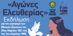 Εκδήλωση «Αγώνες Ελευθερίας» για τον εορτασμό των Εθνικών Επετείων της 25ης Μαρτίου 1821 και της 1ης Απριλίου 1955 , Πέμπτη, 27 Μαρτίου 2025